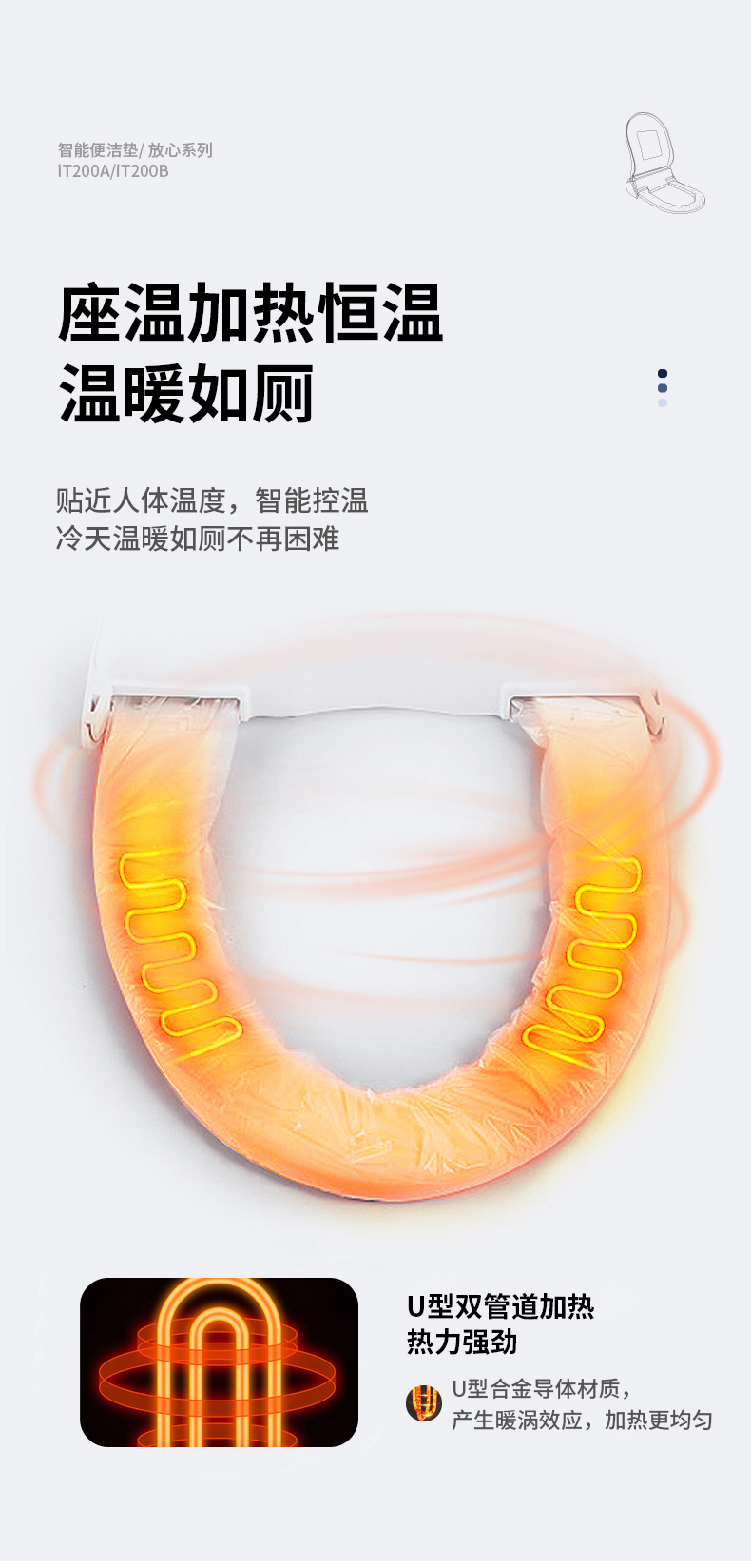 恒溫座圈:室內(nèi)環(huán)境溫度低于18℃,自動(dòng)開(kāi)啟加熱功能至32℃-36℃后恒溫。